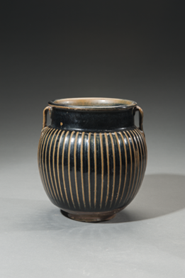 金鹤壁窑黑釉双系凸线纹瓷罐